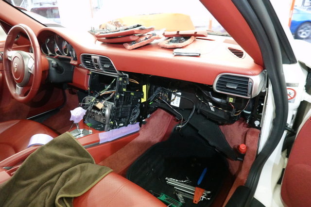 ETCは純正ナビ専用なのでこちらも交換します。グローブボックスも外して作業します。