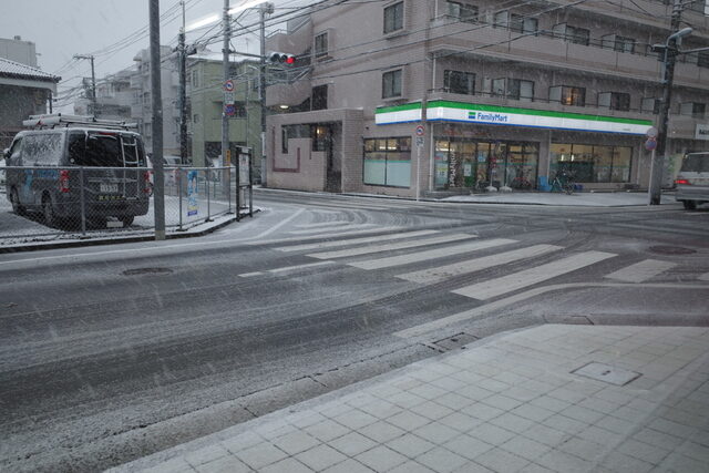 7時過ぎです。しっかり積もりました。帰れないかも ショールームに泊まり?ミゼットⅡは夏タイヤです。細いのである程度の雪なら何とかなるのですが?環8の陸橋で停止すると駄目かも?、、、、^^;