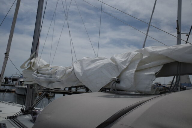 船内でリラックスタイムです。セーリングの教本を読んで本日の反省会?