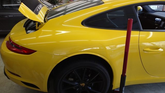 続いて991の後期型のお客様もオイル交換でご来店です。ポルシェは慣れているので楽勝?約7L?パソコンでサービスインターバルをリセットして終了です。