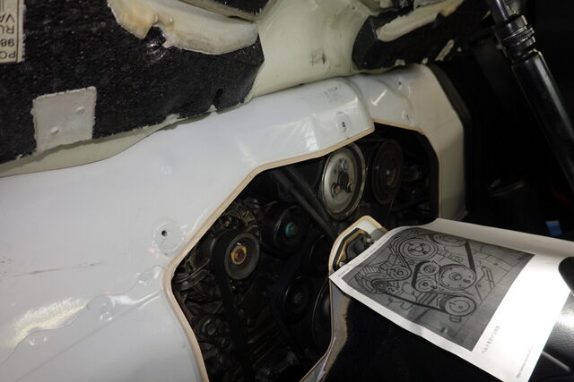 虎の巻を見ながらベルトを取り付けてクーラントを入れて