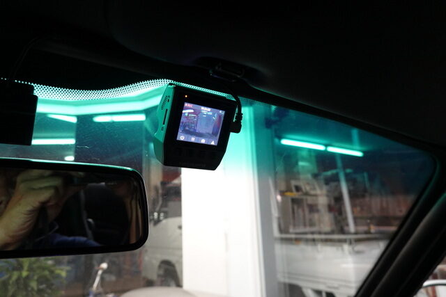 カロッツエリアのドラレコです。サイズ感が良いです。設置完了です。