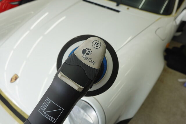 911カレラ3,2ターボルックCVの納車整備開始です。取り敢えず本日はボデイーのガラスコーティングの施工をします。洗車してマスキングして作業開始です。