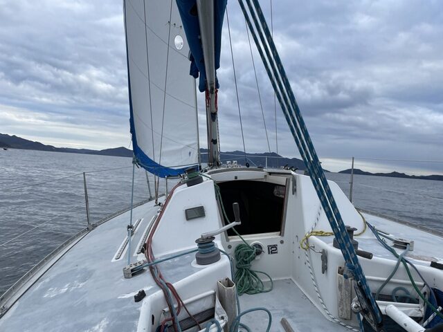 離岸してセールアップです。タッキング、ジャイビング練習です、、、
