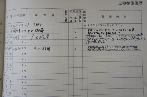 新車からの整備記録簿です。