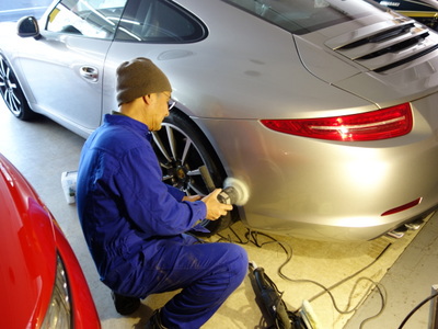 バンパーの板金塗装が完了したのでブライトサービスの幸島さんに