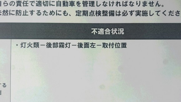 リヤのフォグランプは有りますか? ハイ、点灯すると左側過ぎると言うことで不適合! ^^;