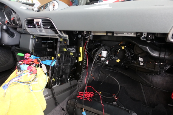 納車準備中の997カレラ4Sです。古い純正ナビから最新の社外ナビに交換しています