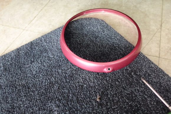 続いて写真のネジを回してヘッドライトを外します。このネジが曲者?外す時は良いのですが