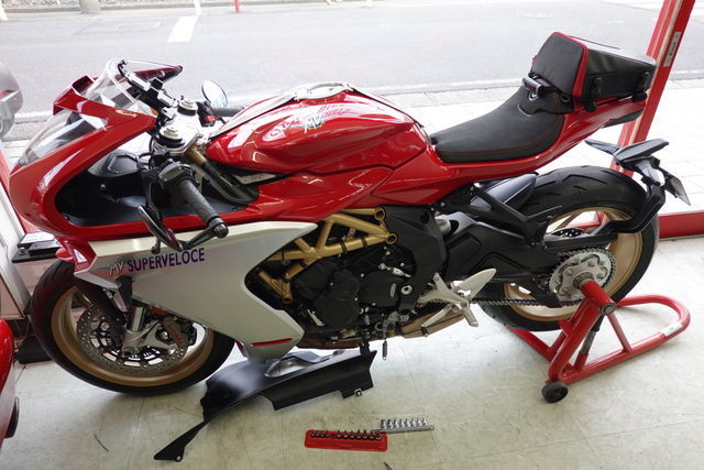 スタンドを立てた状態も車高をダウン加工する前と同じ傾きになりました。