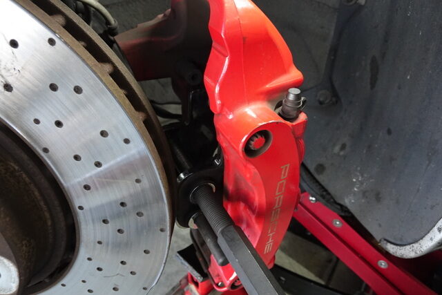 本日は991カレラS後期型のブレーキパッド交換のお手伝いです。お客様からパッド警告灯が点灯したという事で交換のお手伝いしました。