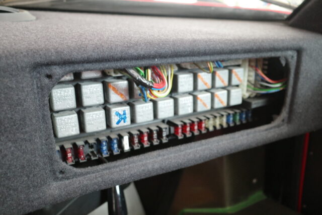 助手席側のカバーを外すとヒューズボックスが有ります。