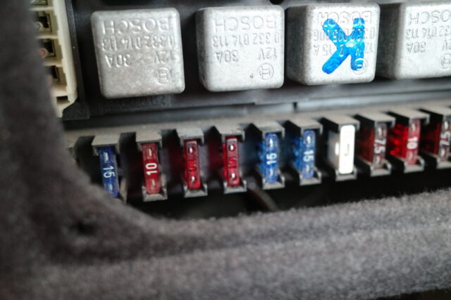 昨日の続きです。バッテリーはフル充電したのでセルモーターは元気に回ります。一瞬初発は来るのでガス欠状態? 取り敢えず燃料ポンプのヒューズをチェックします。