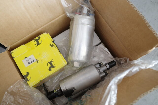 最悪の場合ストックの燃料ポンプと交換する予定でした。手前の小さな燃料ポンプが新車の時の純正です。