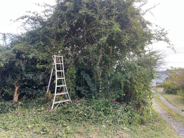 ぼうぼうだった場所も刈りました。お隣に伸びた枝も切りました。流石に高齢者になると高い木に登るとバランスを取るのが大変でした。命綱が必要かも?