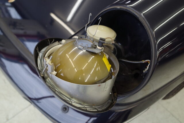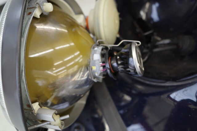 ヘッドライトの電球がLEDに交換されているのでハロゲン球に戻します。