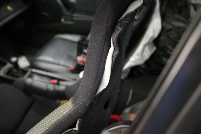 レカロのバケットシートの背面に車検対策用のカバーを取りけました。これで明日の継続検査を受けられます!