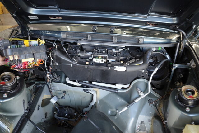 新しいファンを取り付けてベルトの張り具合を確かめます。個体差が有るのか若干ファンカップリングに干渉する場合も有ります。大概は直ぐに馴染んで音が出なくなりますが?^^;