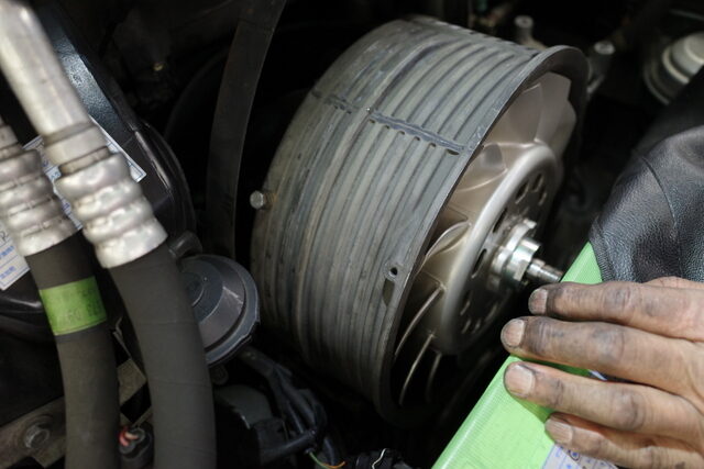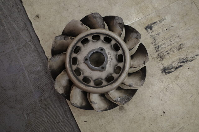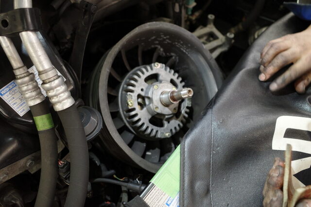 エバポの交換が終わったのでオルタのクーリングファンの交換もします。傷んだインペラーを交換します。