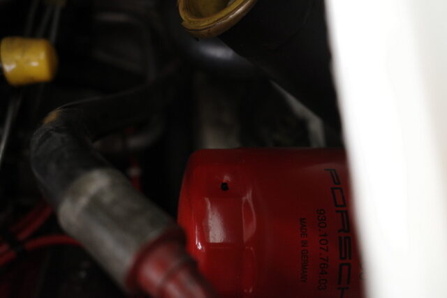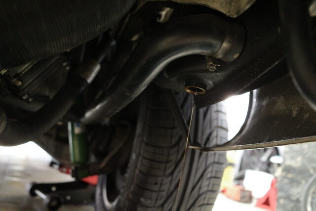 エアーで吹くと残ったオイルがドレインから排出します。汚さなく済みます