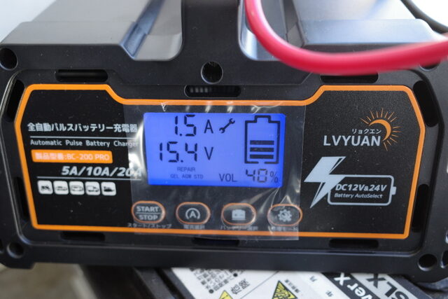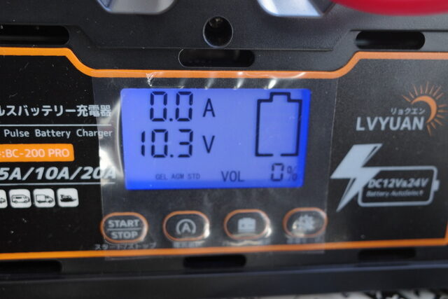 ここで実験君です。放電したバッテリーの複活?リョクエンのチャージャーで回復モードで充電です