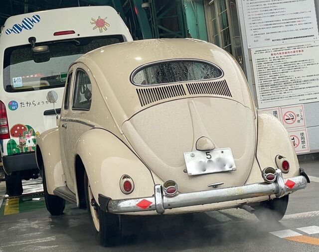 今日は冷たい雨の中、991の継続車検で練馬です。意外に空いていました。古いビートルが居ました。