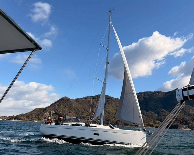 観音マリーナにセーリングの練習に行って来ました。今回はマリーナで知り合った方達から歓迎会をして頂きました。強風の中3艇でクルージング?
