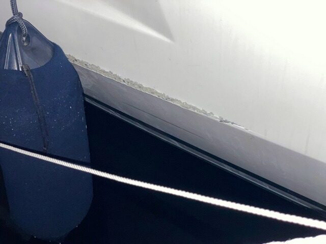 先週、強風のクルージングで実はハルに傷を付けてしまいました。^^;