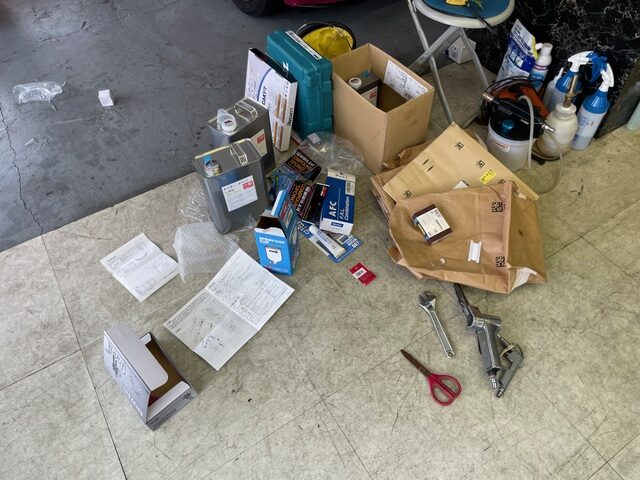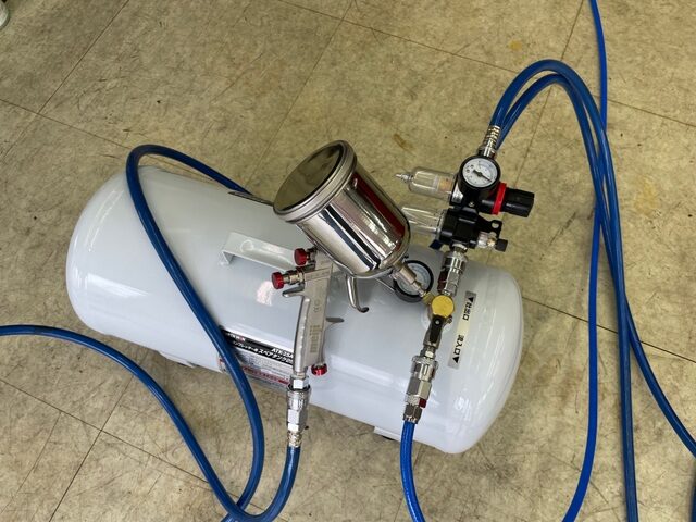 来月、広島に行った時に船を上架してリペアしたいと思い、必要な材料を揃えています。簡単な軽作業用のコンプレッサーが有るのでこれを使ってゲルコートの塗装をしたいと思います。