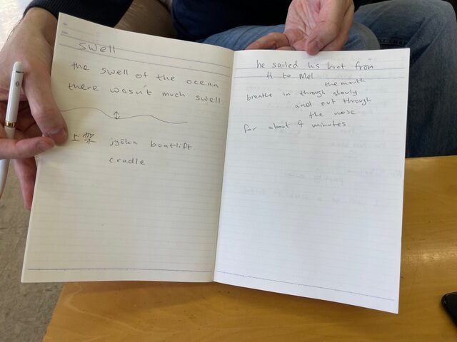 会話の中心は広島でのセーリングのアクシデントに付いててした。^^;
