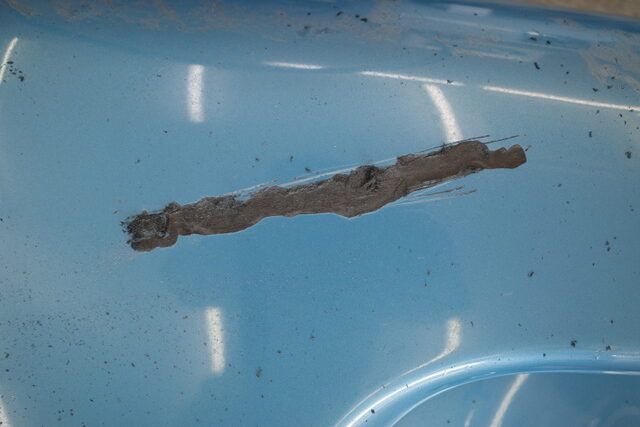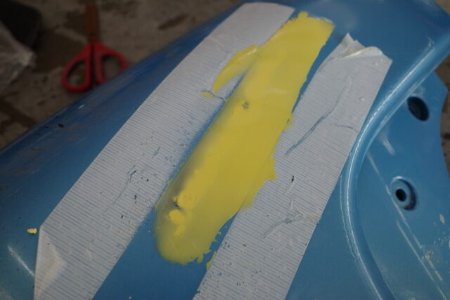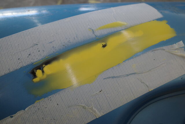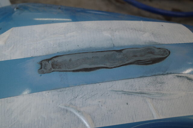 先ずは練習素材にヨットに付いた傷と同じ様に傷を付けました。