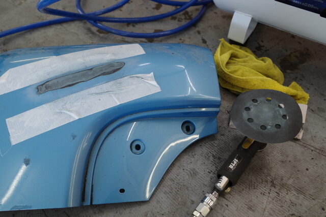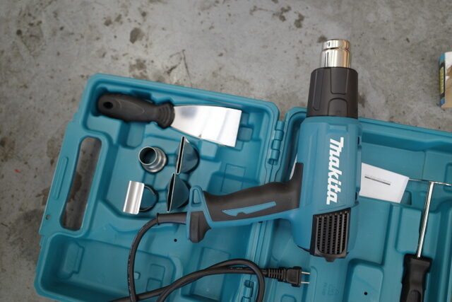 ホットガンでパテを乾かして作業を続けます