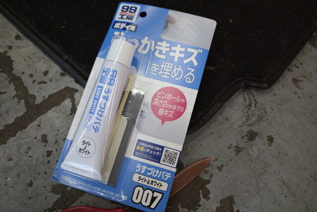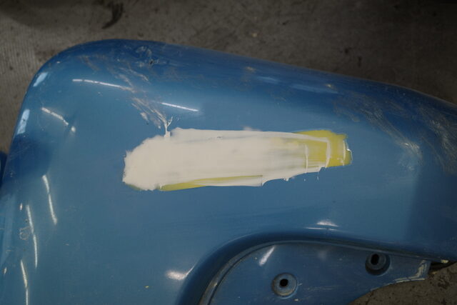 ヘラでパテを塗ります