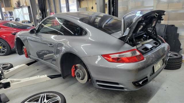 水温センサー不良で入庫して997ターボです。お客様からお預かりした途端に水温計が動く様になりました。^^; 取り敢えず12ヶ月点検相当の整備を開始すると?