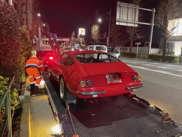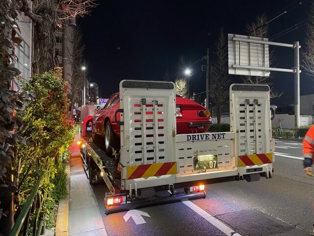 燃料ラインからの漏れの為、積載車にて入庫です。