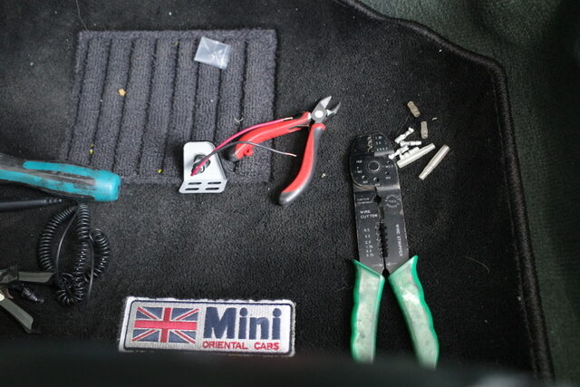 ローバーミニの納車整備です。クラクションのSWの取付です