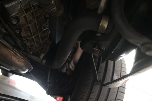 先ずはエンジンオイルの交換です。オイルタンクの15ミリのドレインボルトを外します。