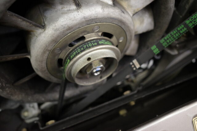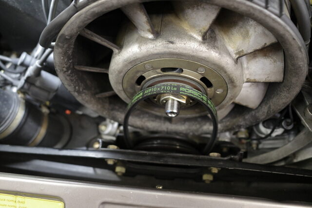 コンプレッサーをずらしてACベルトを外します。後は24ミリのナットを外せばベルトが交換出来ます。