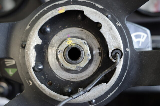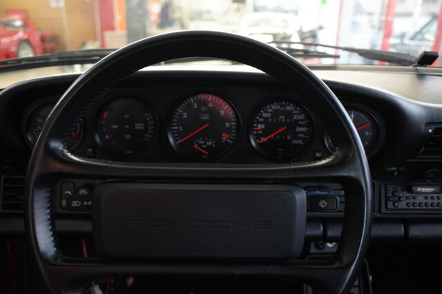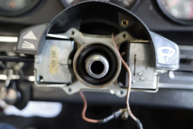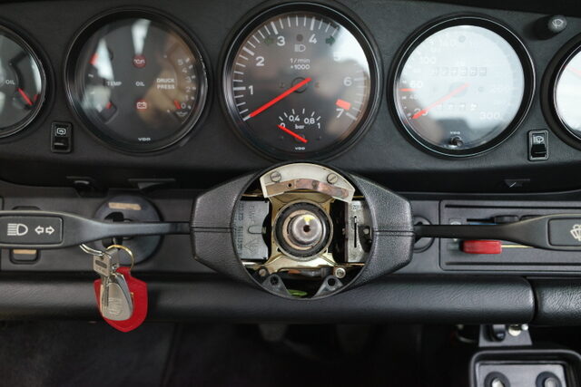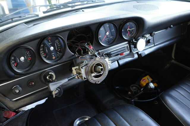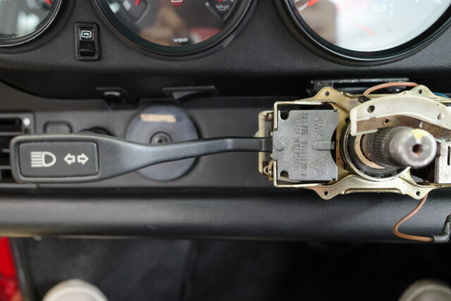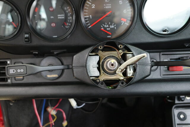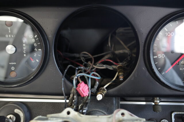 先日継続車検を受けて来た72年911Tです。タコメーターが動かないのでメーター本体の点検に出しました。タコメーター自体は基本的にハマっているだけなので引っ張れば外す事が出来ますがハンドルのカバーが邪魔になって外せません!
